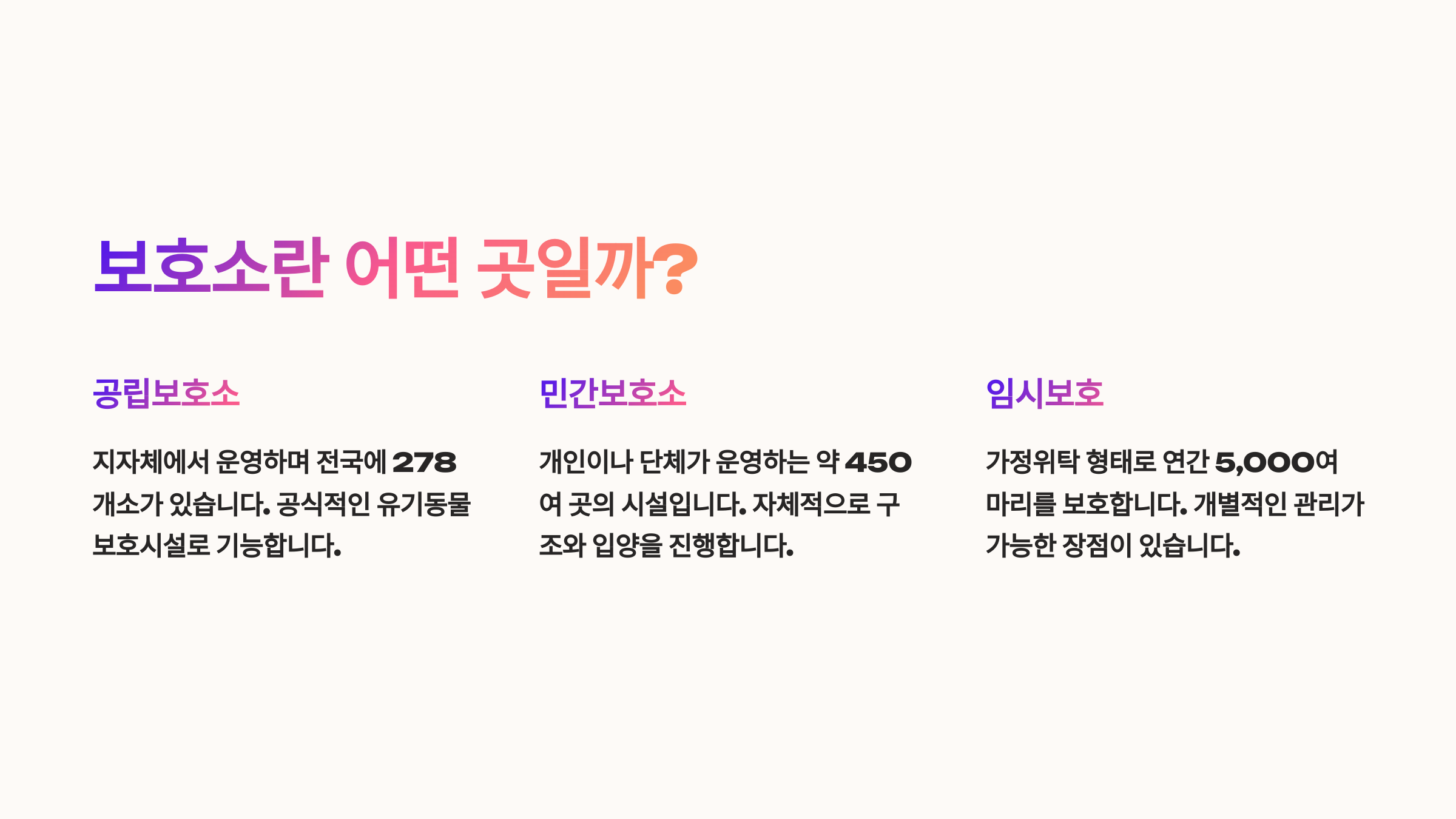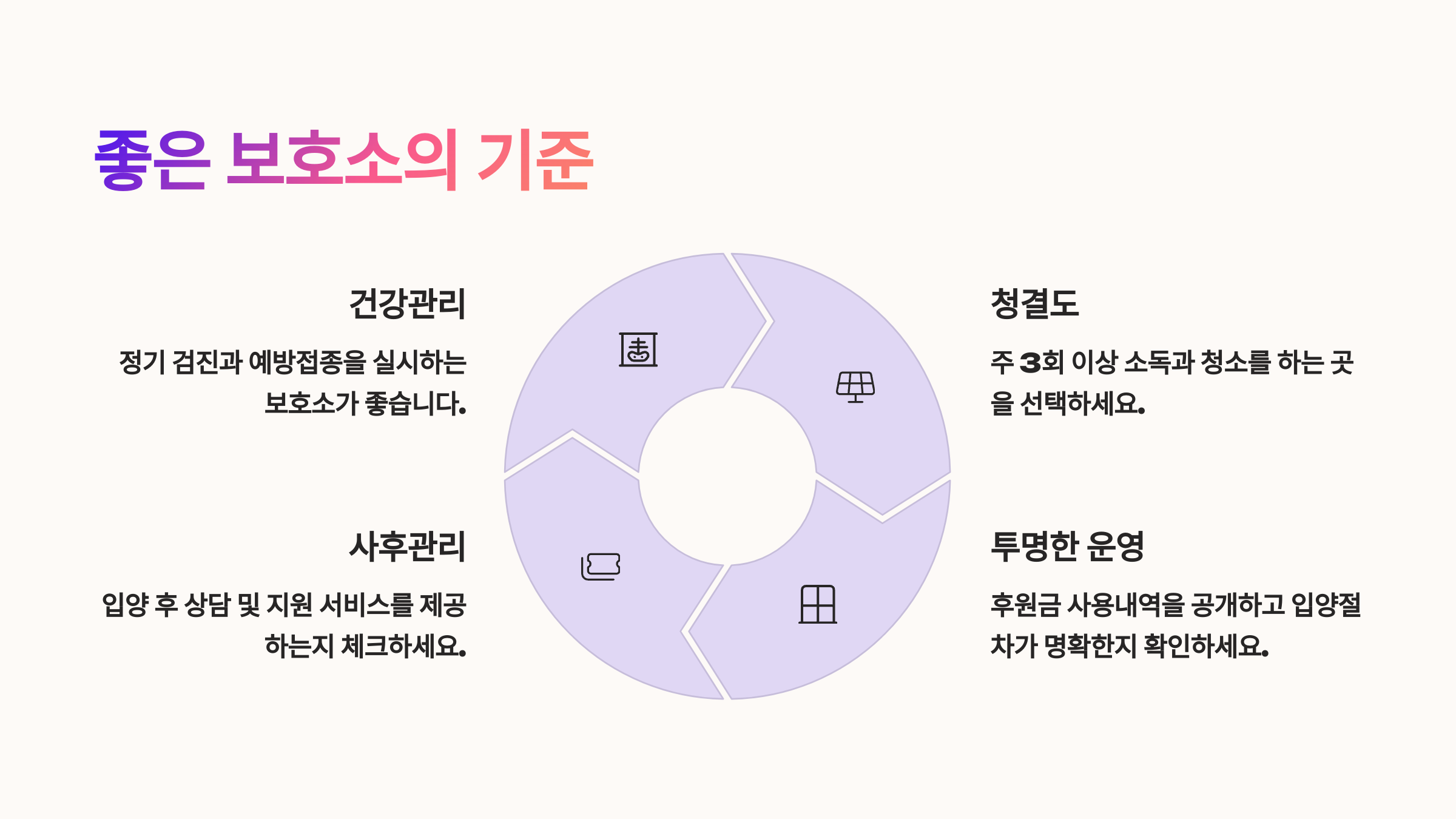 보호소는 단순한 임시 공간이 아니라, 또 하나의 가족으로 가는 다리예요. 그 다리가 건강하고 튼튼해야만, 반려동물도, 입양자도 행복할 수 있어요. 🐕🐾