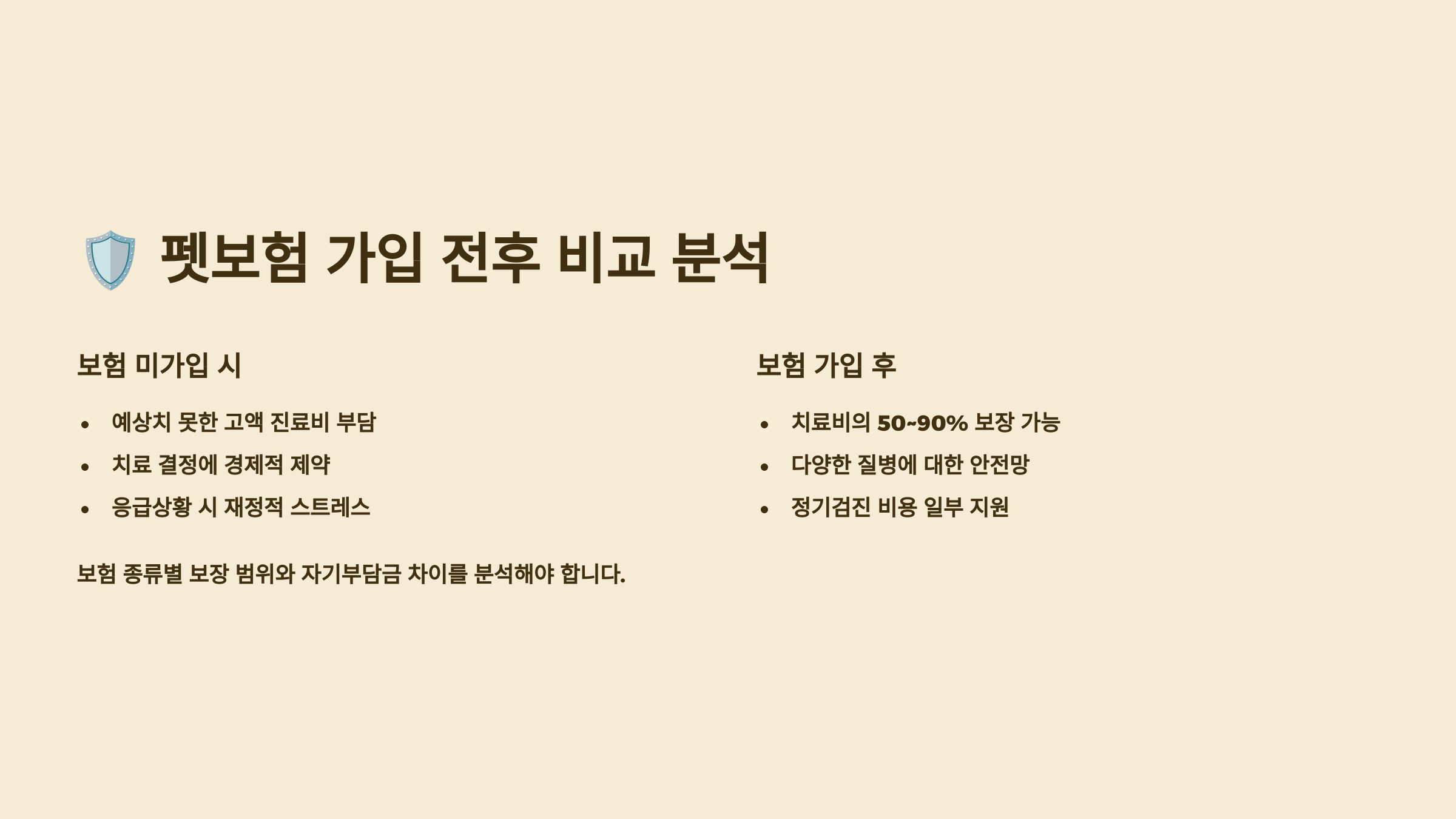 펫보험 선택할 때는 보장 범위와 보상 비율을 꼼꼼히 확인해야 해요. 특히 우리 아이가 잘 걸릴 수 있는 질병이 보장 대상에 포함되어 있는지 확인하는 게 중요하답니다. 보험료만 저렴한 상품보다는 실제 필요할 때 제대로 보장받을 수 있는 상품을 선택하세요. 🛡️
