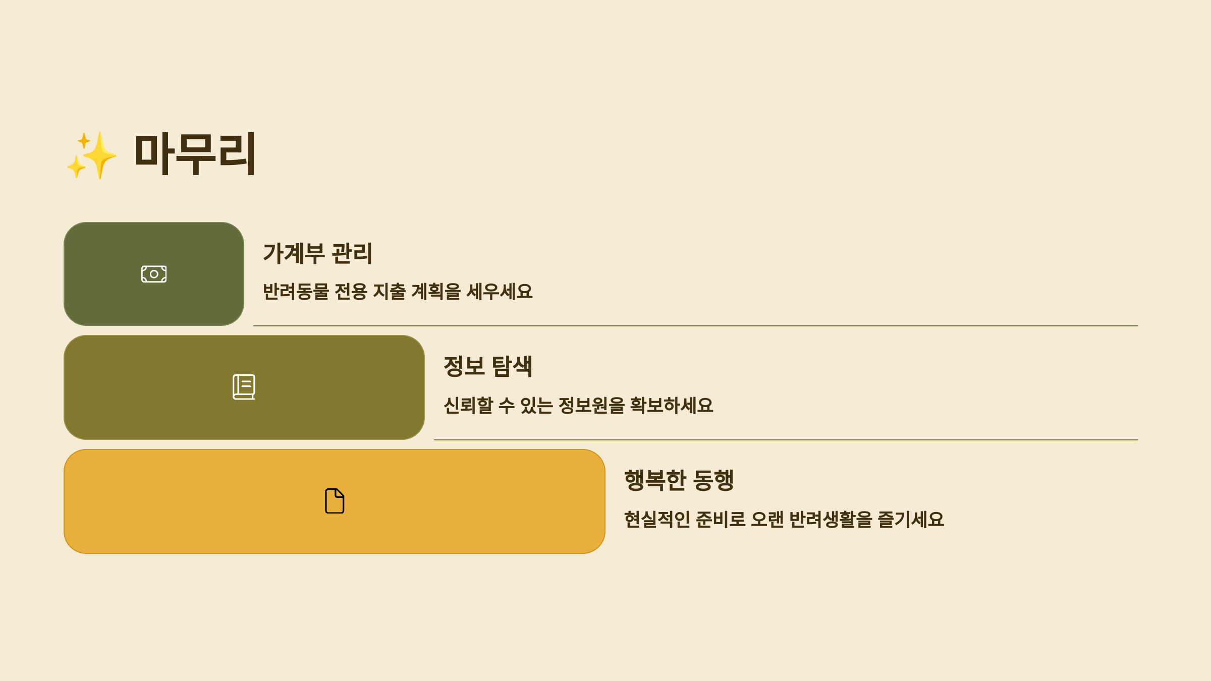 무엇보다 중요한 건 평소 건강관리예요. 좋은 사료, 규칙적인 운동, 스트레스 관리 등을 통해 질병을 예방하는 것이 가장 좋은 절약법이랍니다. 우리 아이들과 건강하고 행복한 시간 보내시길 바라요. ✨