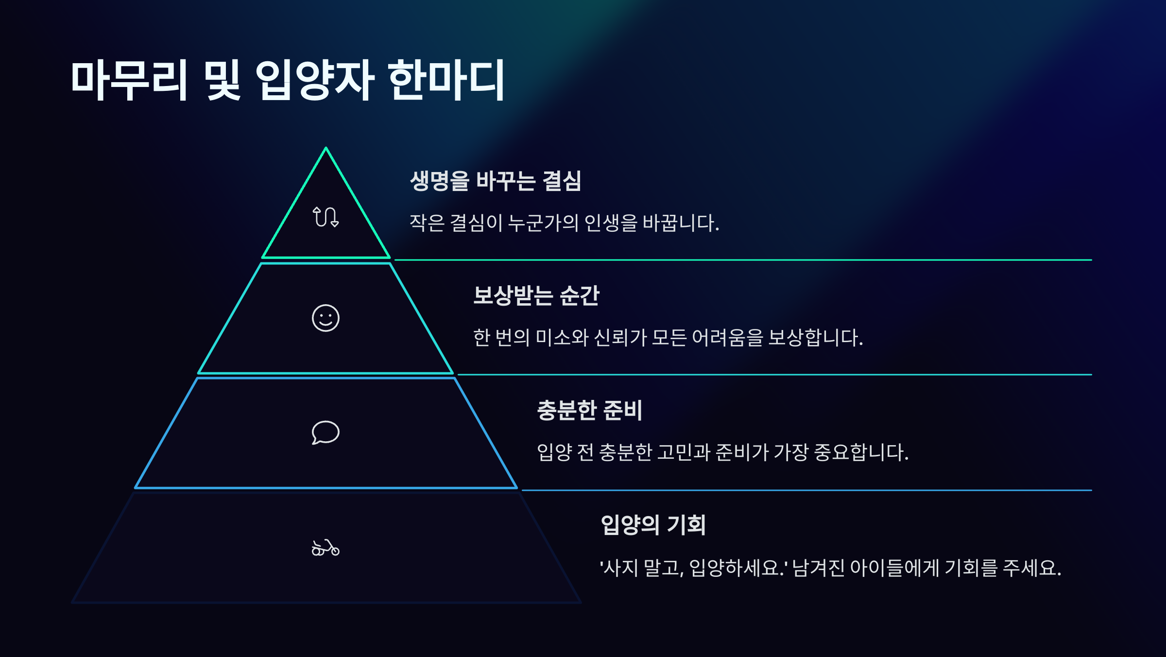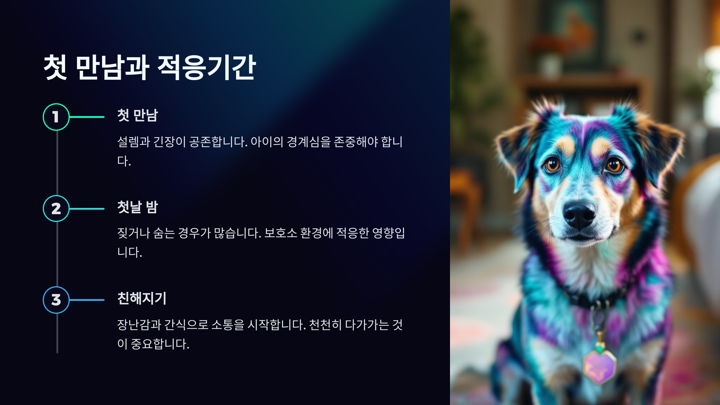 일상의 변화가 처음에는 부담스러울 수 있지만, 시간이 지나면서 더 풍요로운 삶이 된다는 것이 모든 입양자들의 공통된 경험이에요! 🌈