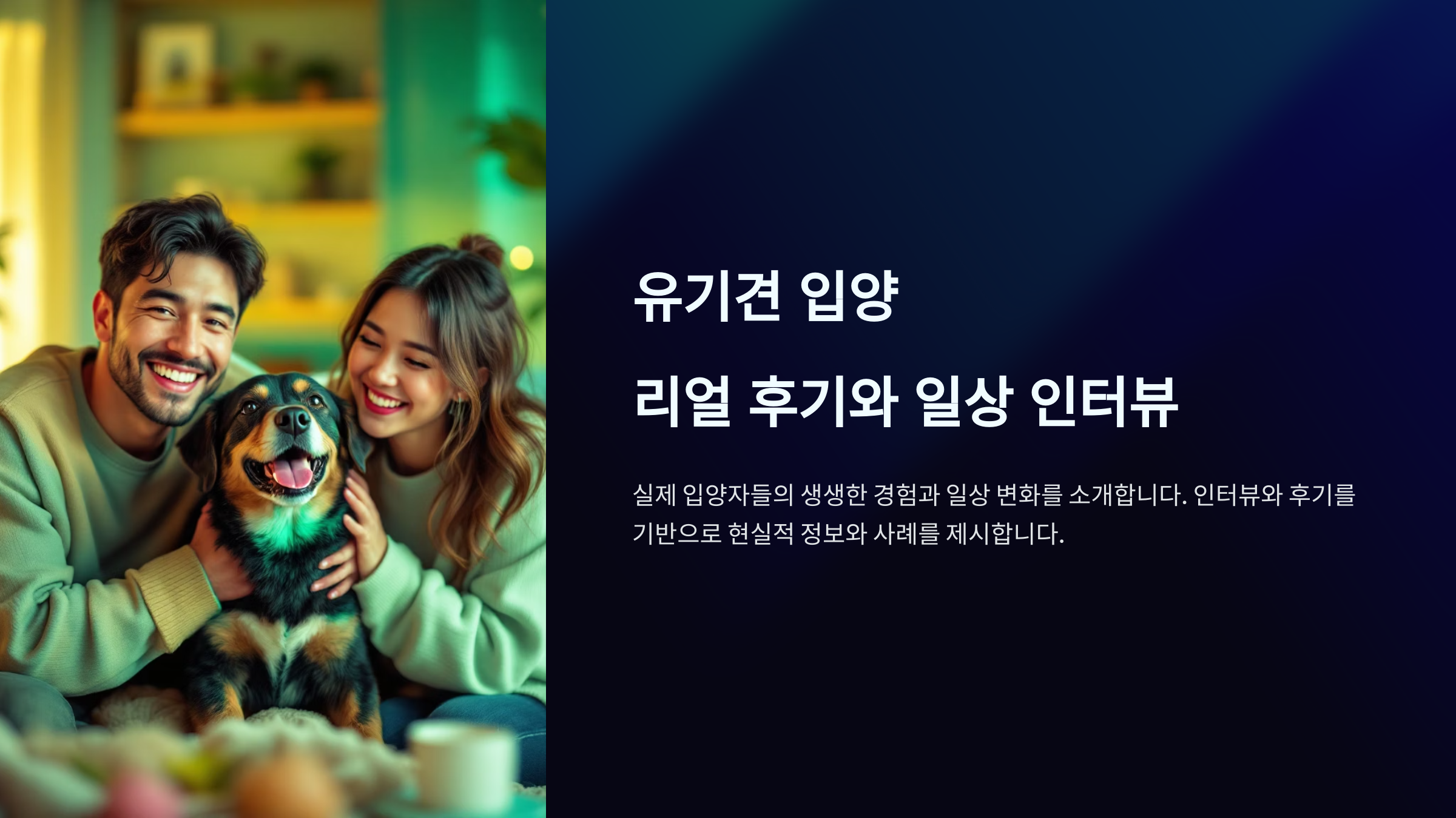 이번 글에서는 실제 유기견을 입양한 10여 명의 입양자들과 심층 인터뷰를 진행했어요. 입양 결정부터 현재까지의 과정, 예상치 못한 어려움과 보람, 그리고 후회하지 않는 선택이었다는 진솔한 이야기들을 담았답니다. 각자 다른 환경과 상황에서 입양을 결정했지만, 공통적으로 말하는 것은 유기견 입양이 인생에서 가장 잘한 일 중 하나라는 것이었어요.