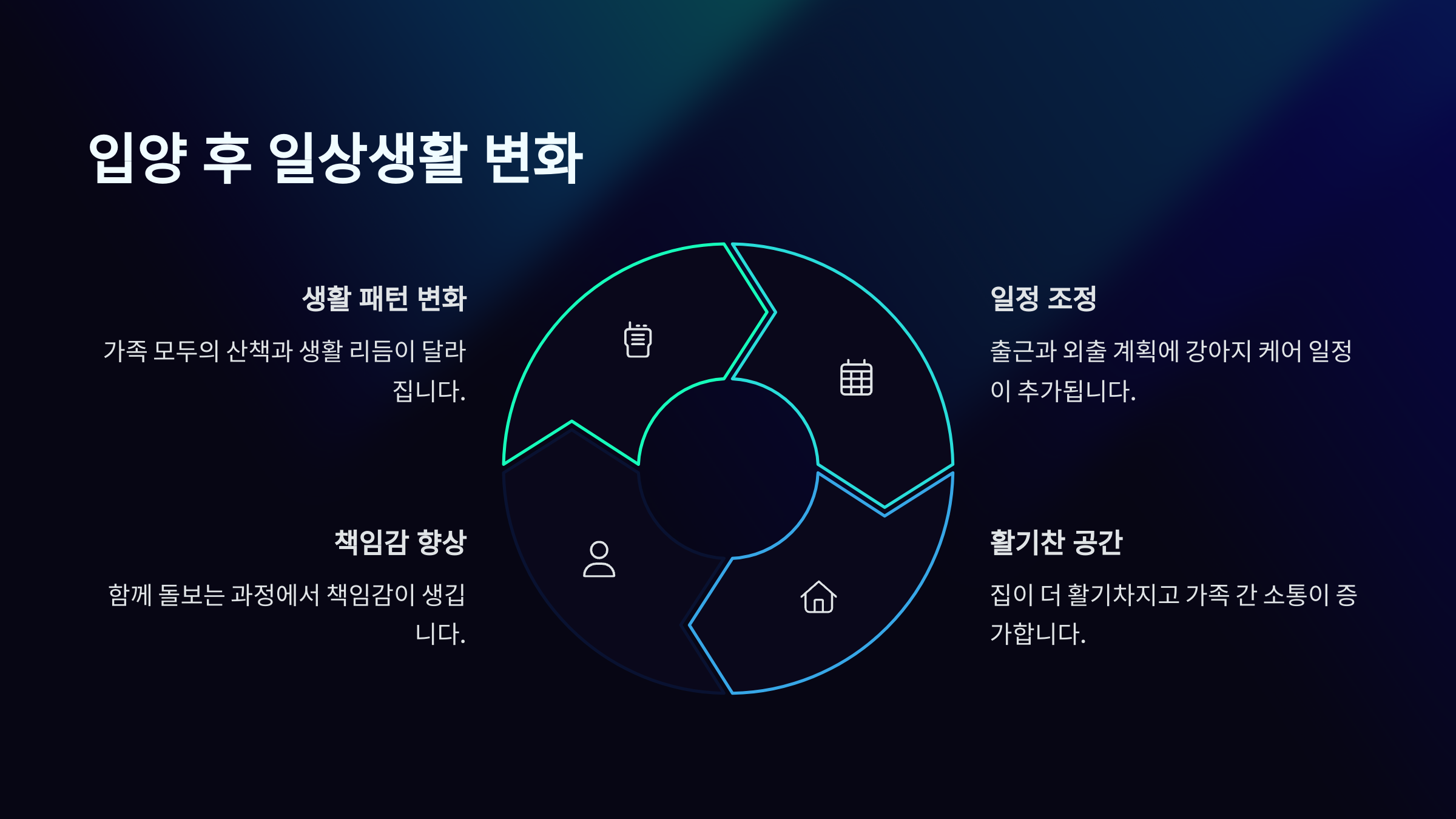 일상의 변화가 처음에는 부담스러울 수 있지만, 시간이 지나면서 더 풍요로운 삶이 된다는 것이 모든 입양자들의 공통된 경험이에요! 🌈