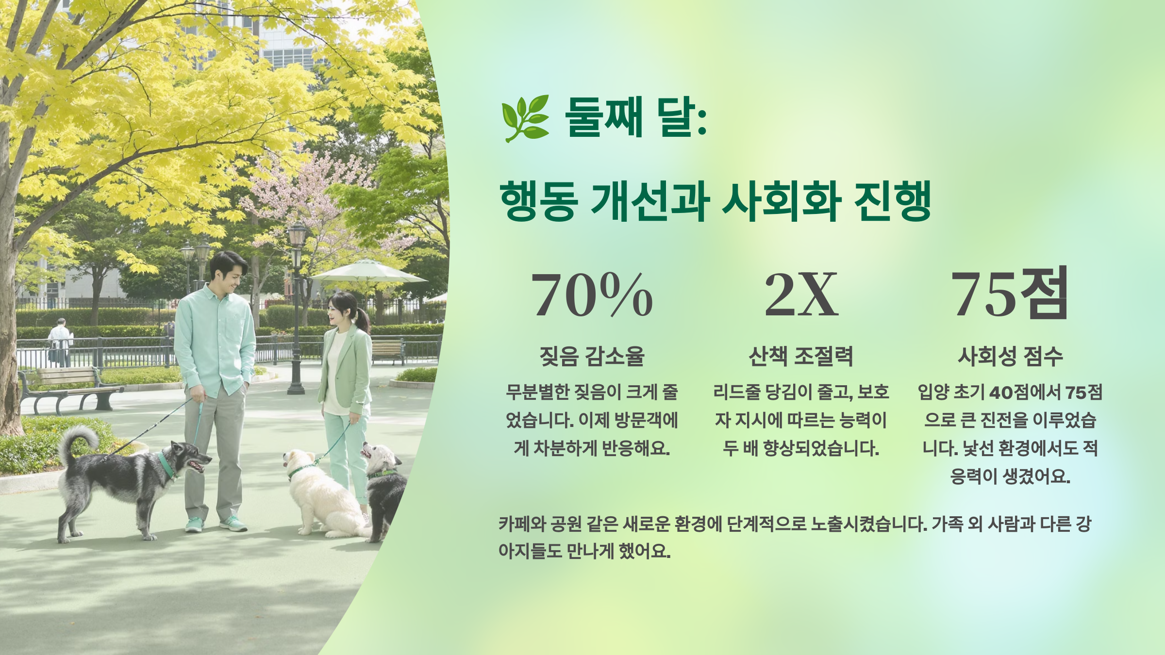 🌿 둘째 달: 행동 개선과 사회화 진행