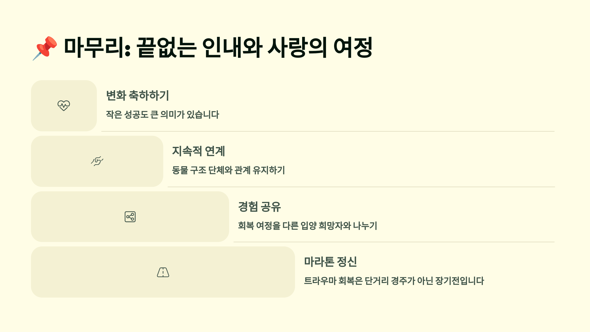 📌 동물의 회복만큼 보호자의 회복도 중요해요. 당신은 지금 충분히 잘하고 있어요. 그리고 함께 회복하고 있어요. 🌱🧡
