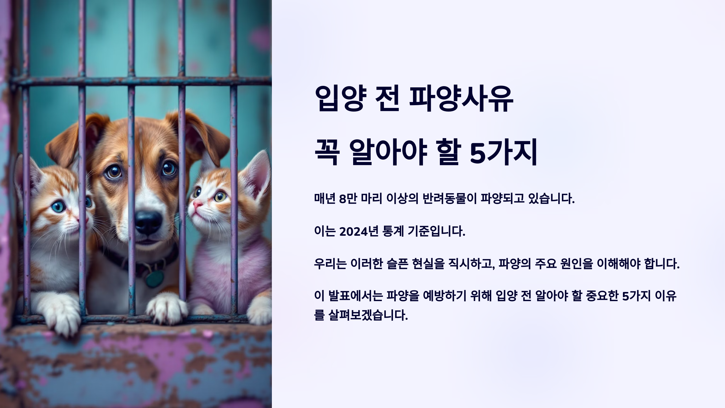 🐾 반려동물을 입양한다는 건 단순히 귀여운 친구를 만난다는 의미를 넘어, 한 생명을 책임지는 커다란 약속이에요. 하지만 안타깝게도 많은 입양이 파양으로 이어지는 현실도 무시할 수 없어요.