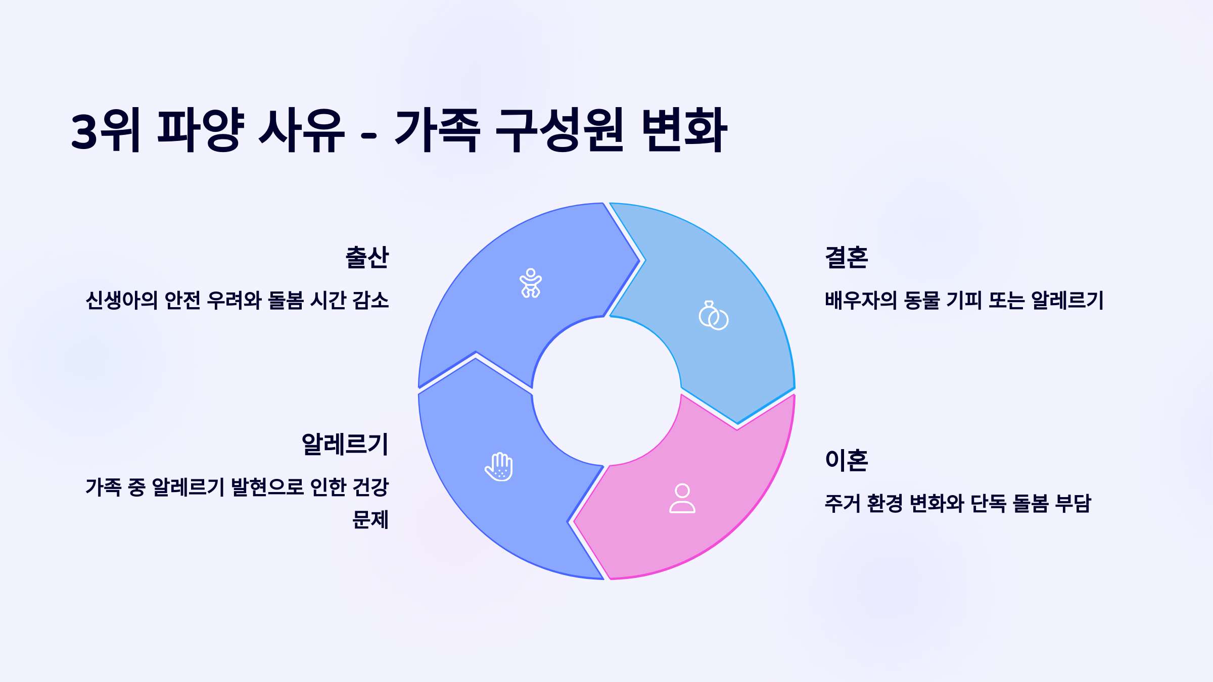 • 2. 알레르기 발생 – 가족 중 알레르기 반응으로 인해 함께 살기 어려워지는 경우.