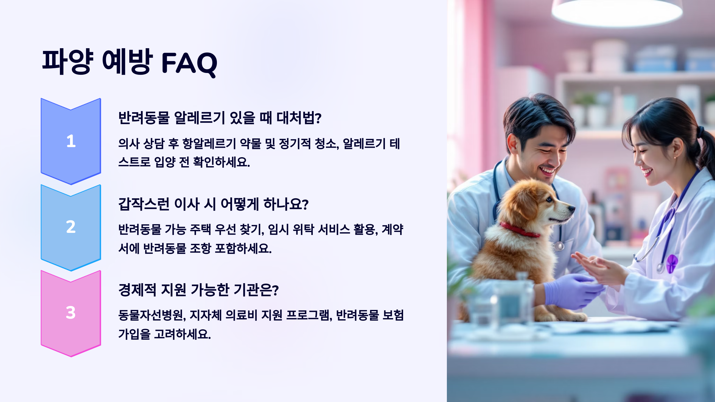 A2. 펫보험 가입이나 긴급 의료비 적금 등으로 미리 대비하면 도움이 돼요.