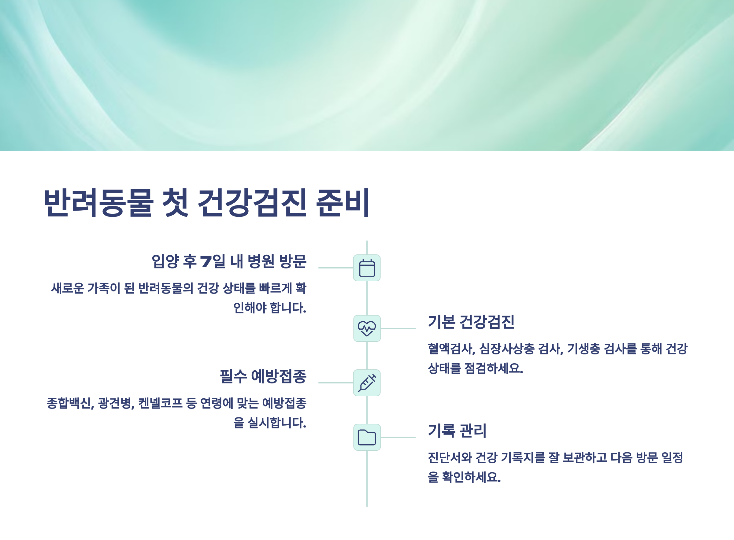 🏥 반려동물을 입양하고 나서 가장 먼저 해야 할 일 중 하나가 건강검진이에요. 특히 유기동물 입양이거나, 분양받은 지 얼마 안 된 경우엔 기생충, 감염병, 예방접종 여부를 꼭 확인해야 해요.