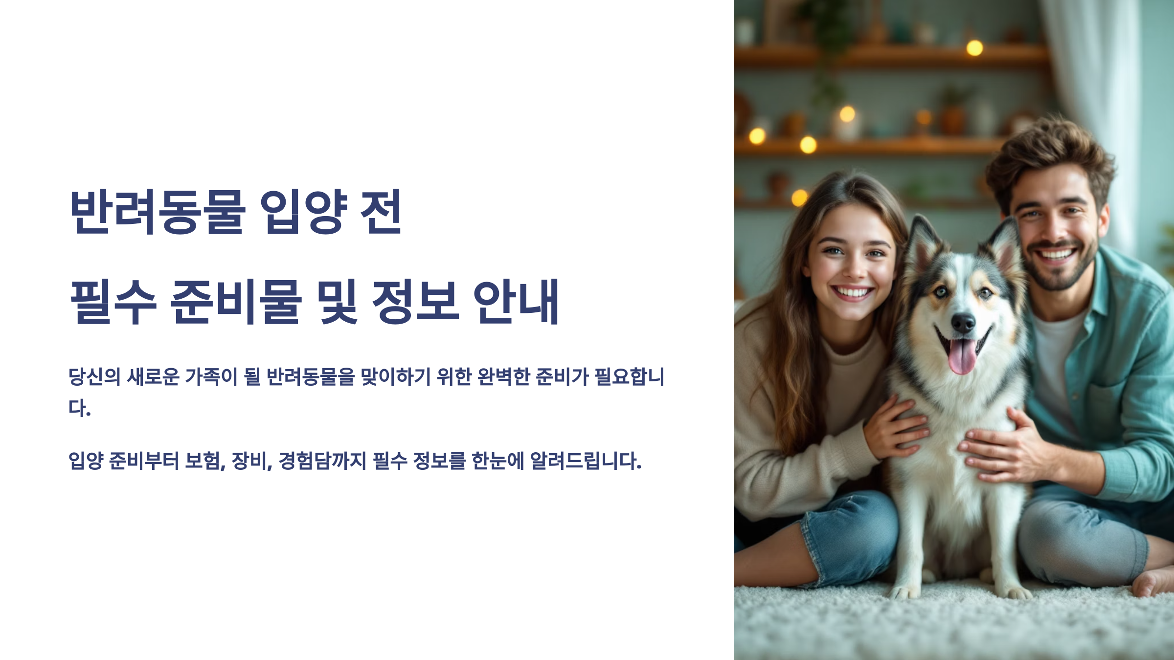 - 📦 입양 전에는 사료, 식기, 배변용품, 하우스 등 기본 장비 준비는 필수!