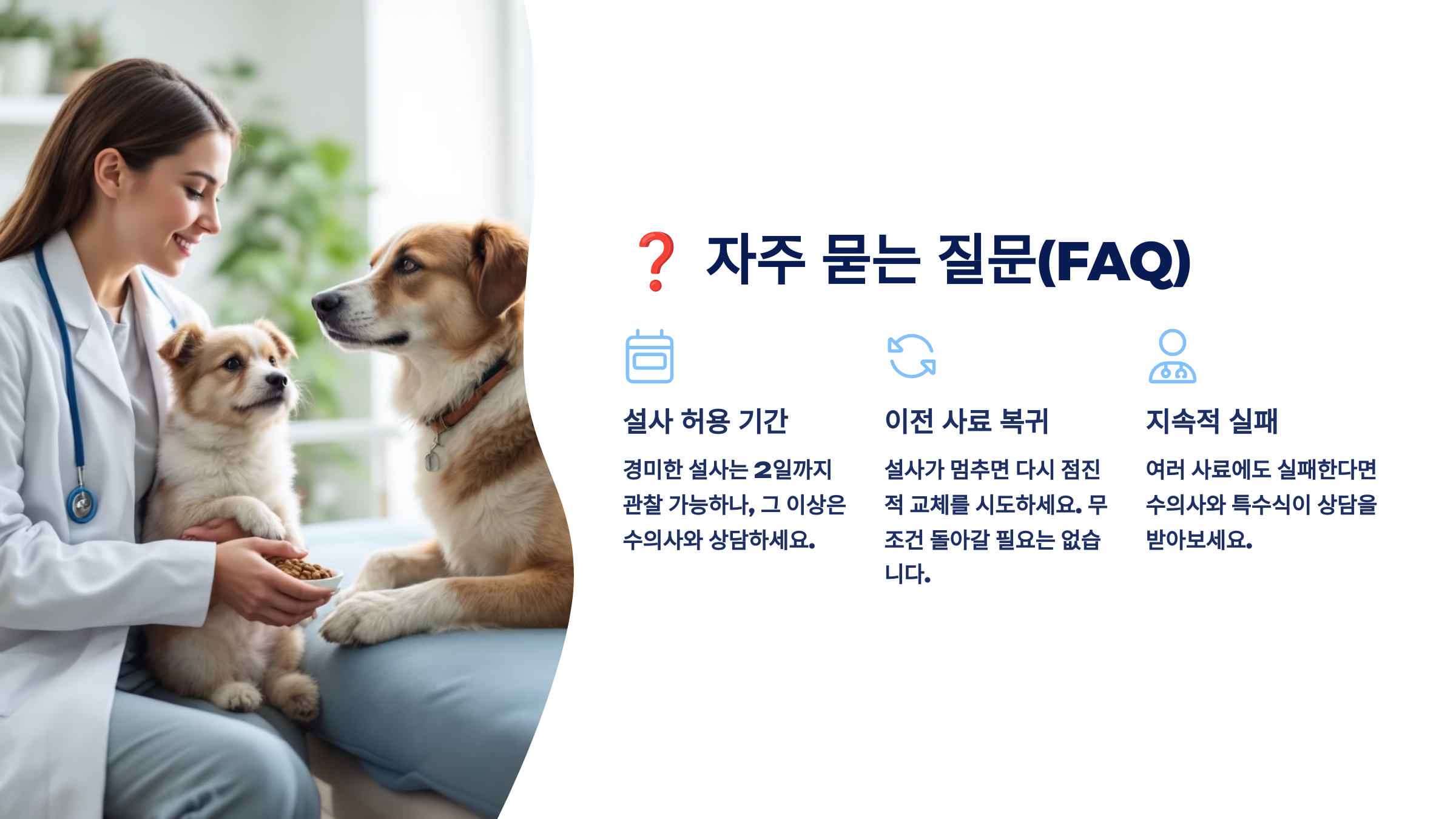 Q3. 설사 멈춘 후 바로 새 사료만 줘도 되나요?