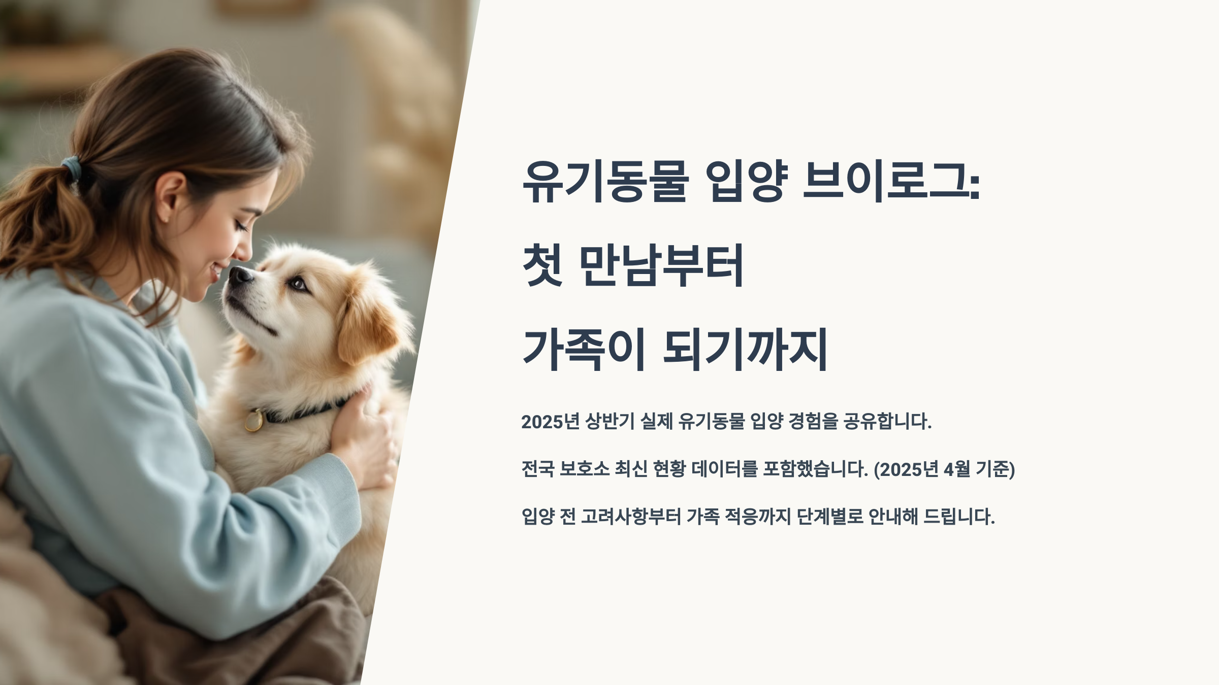 유기동물 입양 브이로그가 요즘 정말 많은 사람들의 관심을 받고 있어요. 단순히 예쁜 반려동물의 일상을 보여주는 것을 넘어서, 실제 입양 과정부터 적응까지의 진짜 이야기를 담아내는 것이 얼마나 의미 있는지 많은 분들이 공감하고 있답니다. 2025년 현재 전국 유기동물 수는 매년 10만 마리를 넘어서고 있어서, 입양에 대한 관심과 인식 개선이 정말 필요한 시점이에요.