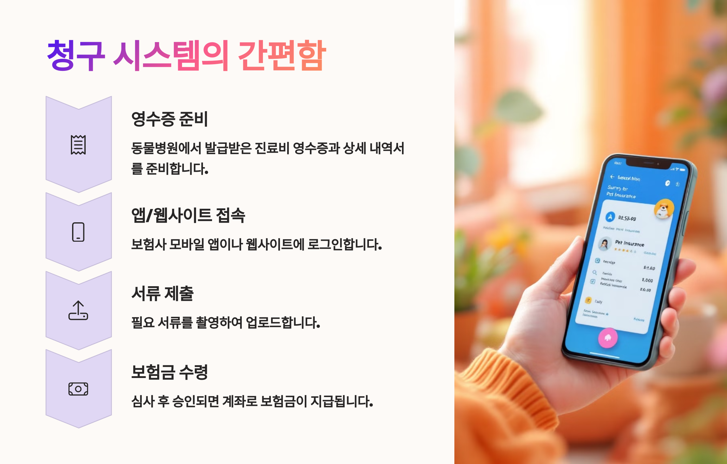 📌 반려동물 보험 청구는 진단서, 진료비 영수증, 진료내역서 등을 보험사에 제출해야 해요. 문제는… 이걸 매번 출력해서 스캔하고 보내야 한다면 한두 번 하다 말게 돼요. 😰