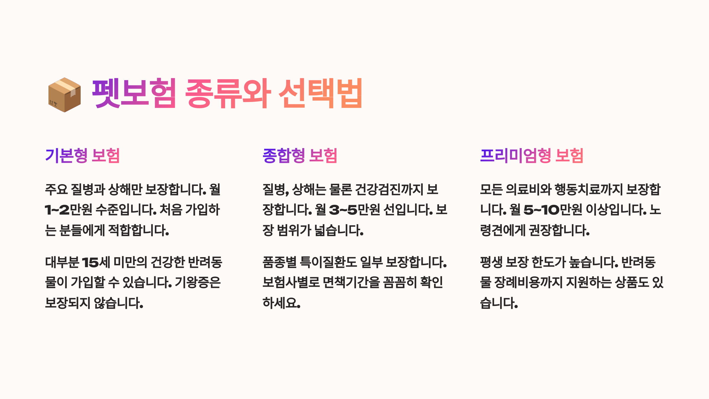 다음은 📦 펫보험 종류와 선택법 섹션으로 이어갈게요!