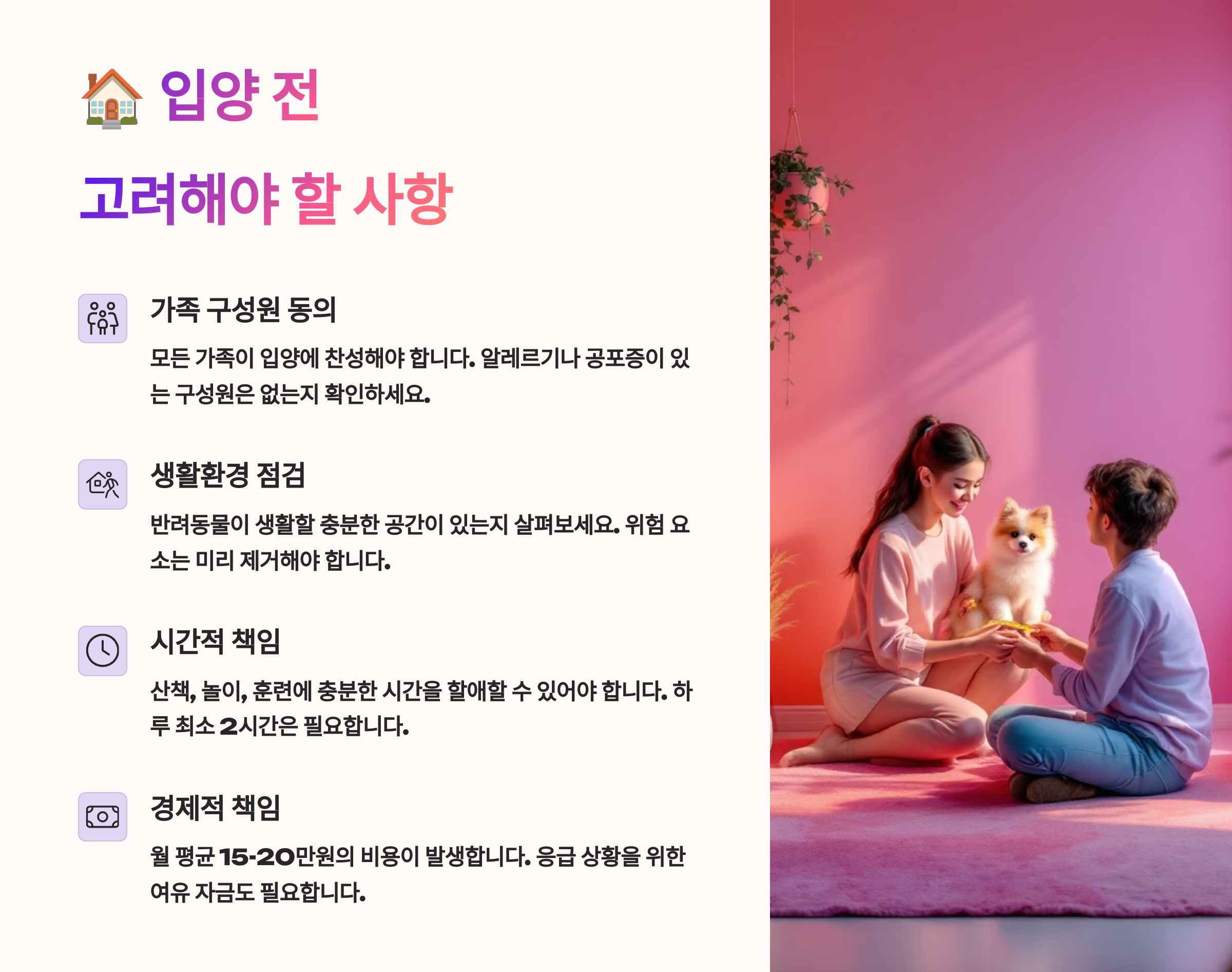 • 🏠 입양 전에는 시간·공간·비용 모두 점검하고 결정하기