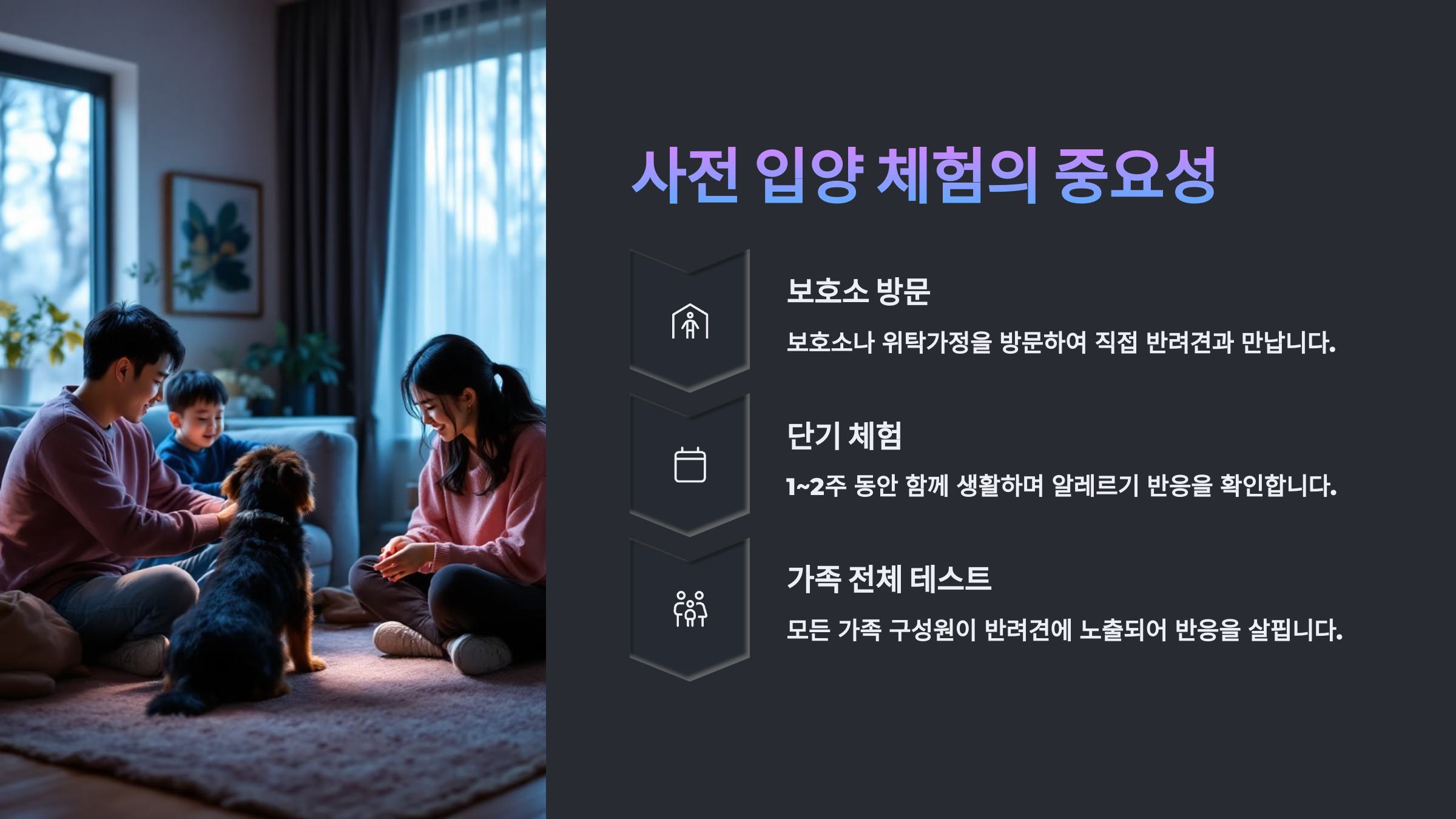 사전 체험은 아이들이 있는 가정이나, 노약자가 있는 환경이라면 더욱 추천돼요. 가족 모두가 알레르기 반응이 없는지 확인한 뒤 입양을 결정해야 오랜 동행이 가능하니까요. 👨‍👩‍👧‍👦