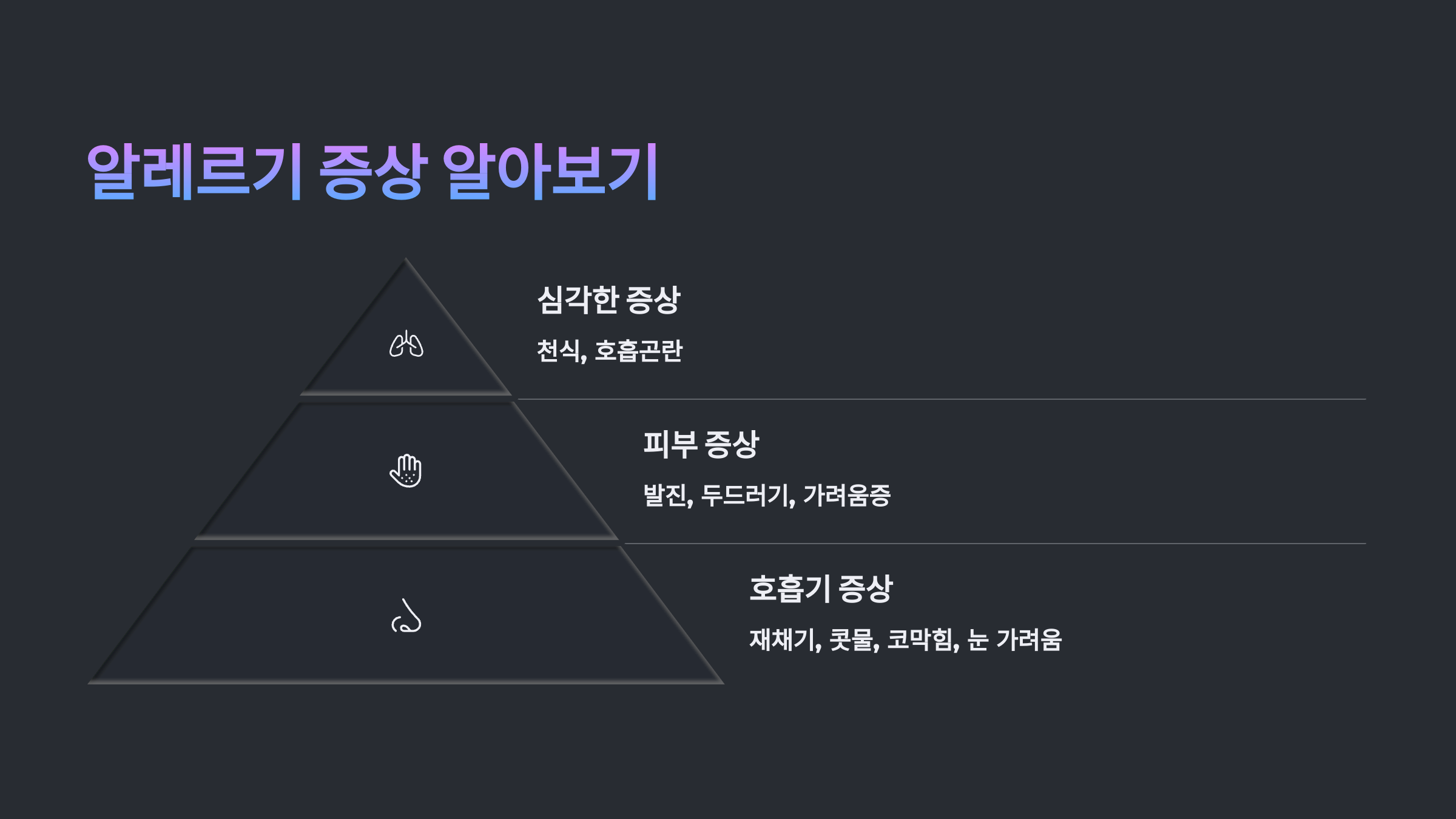 다음은 🤧 알레르기 증상 알아보기 섹션에서, 어떤 증상이 나타날 수 있는지 자세히 살펴볼게요!