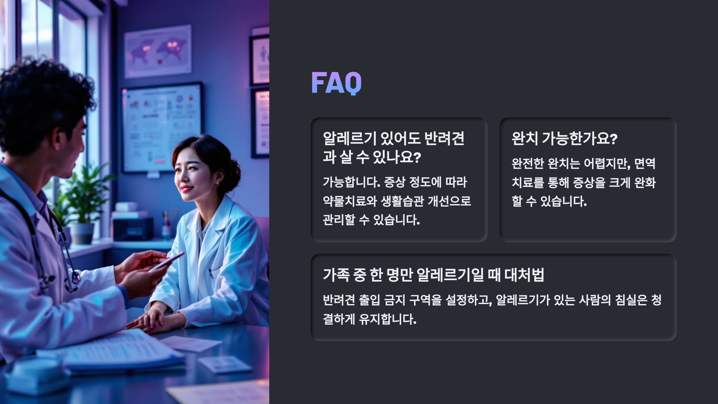 이제 다음은 8️⃣ FAQ 섹션이에요! 알레르기 관련해서 입양 전후로 자주 묻는 질문 8가지를 모아 명확하게 정리해드릴게요. 💬