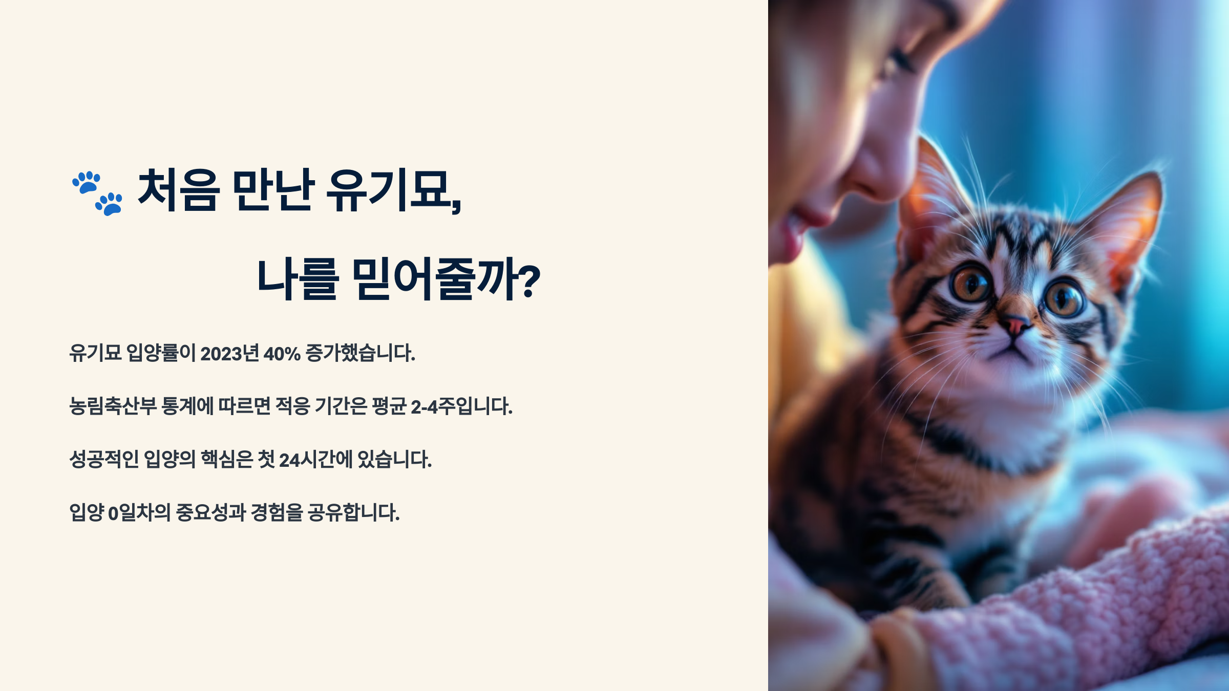 유기묘 입양은 삶의 새로운 장을 여는 일이에요.