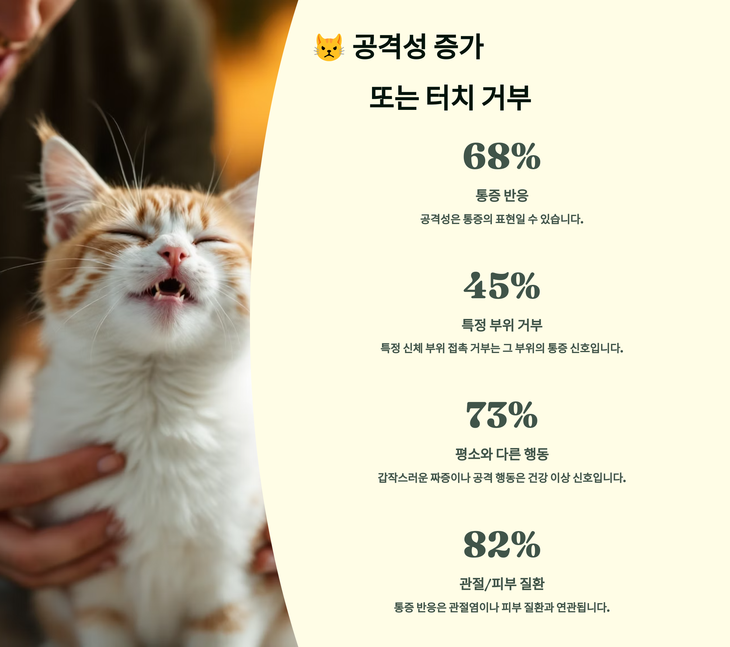 공격성은 무조건 성격 문제로 단정하면 안 돼요. 몸 어딘가 불편하거나, 만져질 때 고통을 느끼는 경우에 자기 방어 수단으로 경계심이 높아질 수 있거든요. 🐕🐈