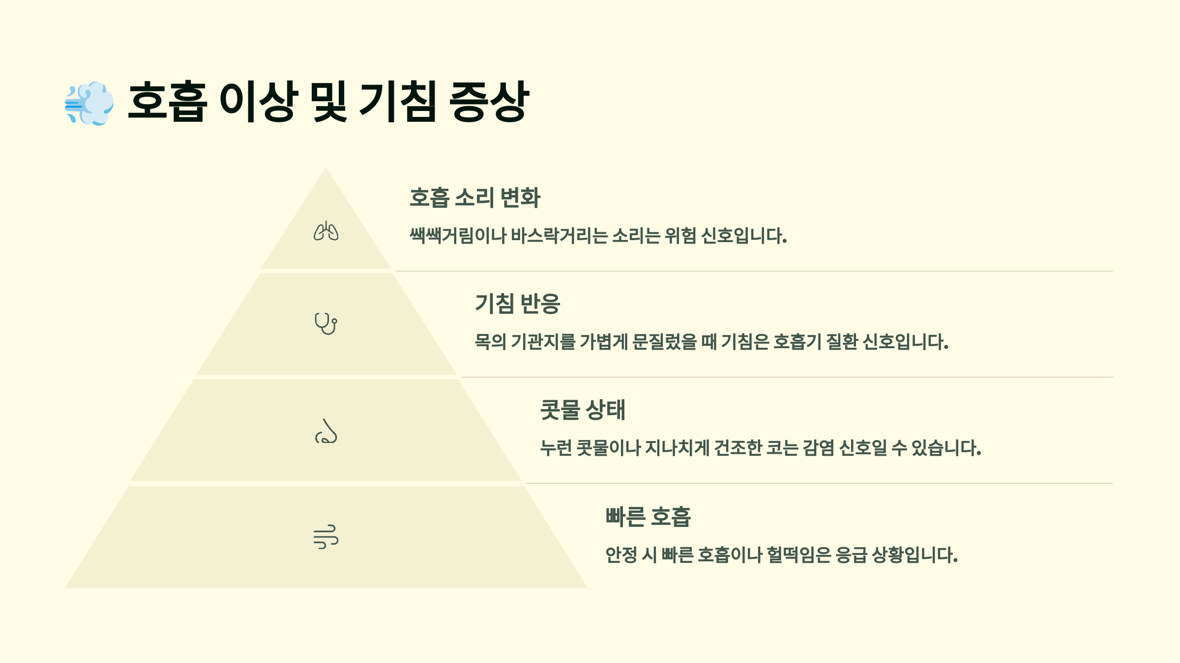 숨쉬는 모습이 평소와 다르게 느껴진다면, 그건 반드시 주의 깊게 봐야 할 신호예요. 호흡기는 반려동물 생명 유지의 핵심 기관이기 때문에 작은 변화도 신속한 병원 방문으로 이어져야 해요. 🫁